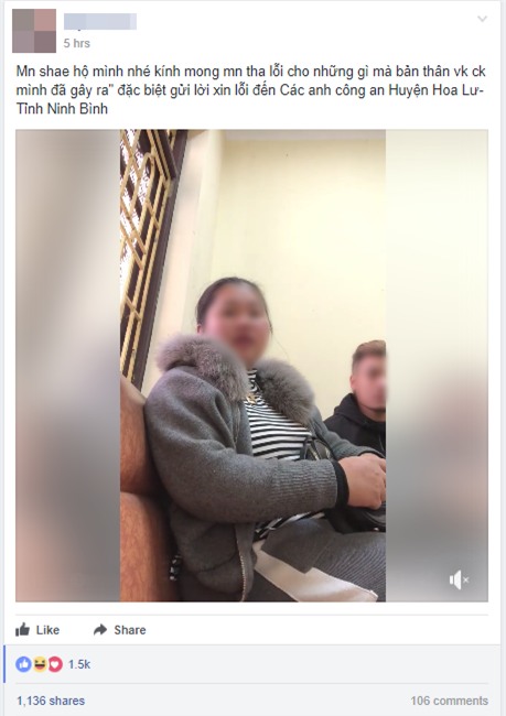 Theo đó, hai vợ chồng trẻ gửi lời xin lỗi hai đồng chí công an, đồng thời mong nhận được sự đồng cảm của mọi người. "Thực sự thì không ai hoàn hảo, ai cũng có mắc sai lầm nhưng quan trọng là vợ chồng mình nhận thức được việc đấy là sai trái. Mong các đồng chí công an cho vợ chồng mình một cơ hội sửa đổi, về những hành vi của bản thân. Hai vợ chồng mình cũng rất hối hận".