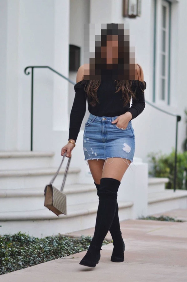 Cô giải thích bộ trang phục bị mẹ chồng tương lai đánh giá là ''gái điếm'' của cô bao gồm: áo quây, bốt đen dài, giày cao gót và váy dài đến đầu gối.