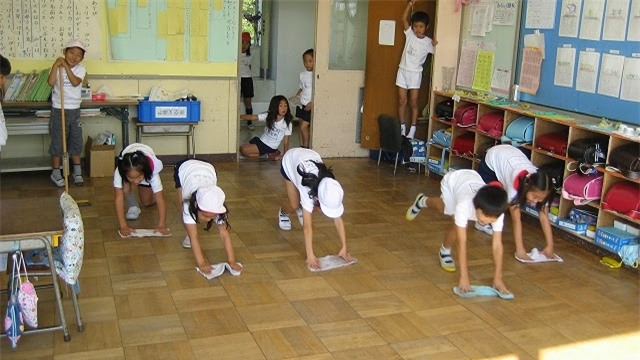 Trẻ em Nhật Bản coi việc lau dọn trường lớp sau giờ học là một niềm vui. Đây cũng là một bài học kĩ năng sống đặc biệt mà trẻ em Nhật được học từ khi còn nhỏ.