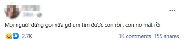 Đau đớn nhất lúc này là cha mẹ cháu bé, có lẽ chưa chấp nhận được sự thật đau đớn này mà người mẹ đã suy sụp hoàn toàn. Dòng chia sẻ mới nhất trên trang Facebook cá nhân của chị A.N khiến nhiều người xót xa, "Mọi người đừng gọi nữa gia đình em tìm được con rồi, con nó mất rồi".