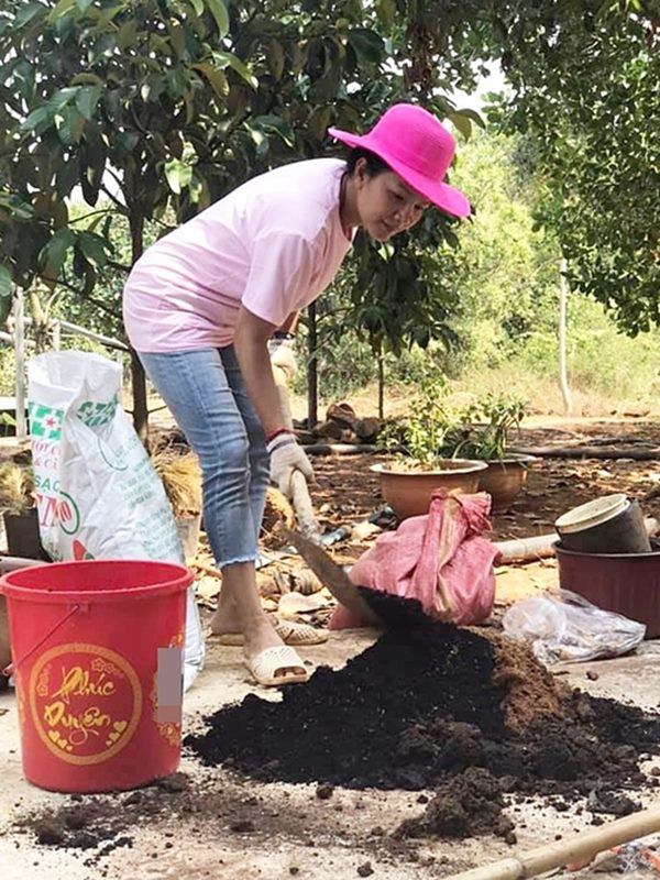 Chị cải tạo mảnh đất, vốn trồng cà phê, cao su do cha để lại, thành vườn với nhiều loại cây ăn trái như: xoài, mít, chôm chôm, măng cụt, vú sữa... Chị nói: "Tôi dành dụm thù lao đóng phim để làm vườn cũng như thuê người chăm sóc. Từ nhỏ tôi quen chẻ củi, trồng lúa, cắt cỏ tranh lợp mái nhà nên giờ không bị lúng túng khi trở lại việc nhà nông".