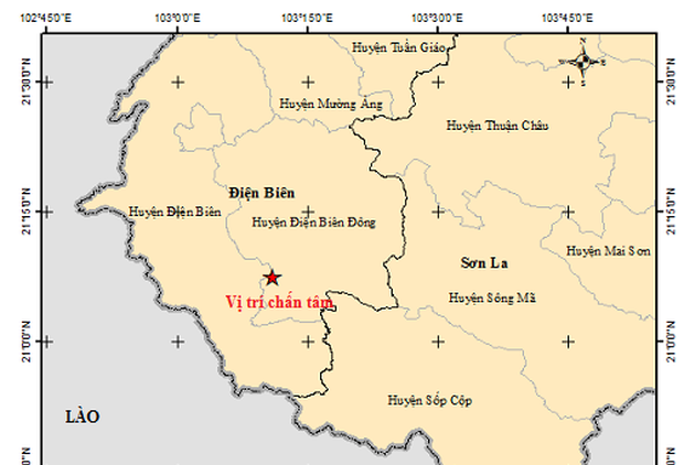 Vào hồi 9 giờ 22 phút 36 giây ngày 14/3, một trận động đất có độ lớn 4.5 Richter xảy ra tại vị trí có tọa độ (21,123 độ vĩ Bắc, 103,184 độ kinh Đông), độ sâu chấn tiêu khoảng 13,2 km. Động đất xảy ra tại khu vực huyện Điện Biên Đông, tỉnh Điện Biên. Cấp độ rủi ro thiên tai cấp 2 tại khu vực tâm chấn.