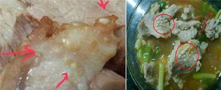 Hình ảnh ấu trùng sán gạo heo trong thực phẩm - Ảnh: Bác sĩ cung cấp. |