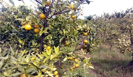 Vườn cam sai trĩu nhưng quả đã chín vàng và đang rụng dần |