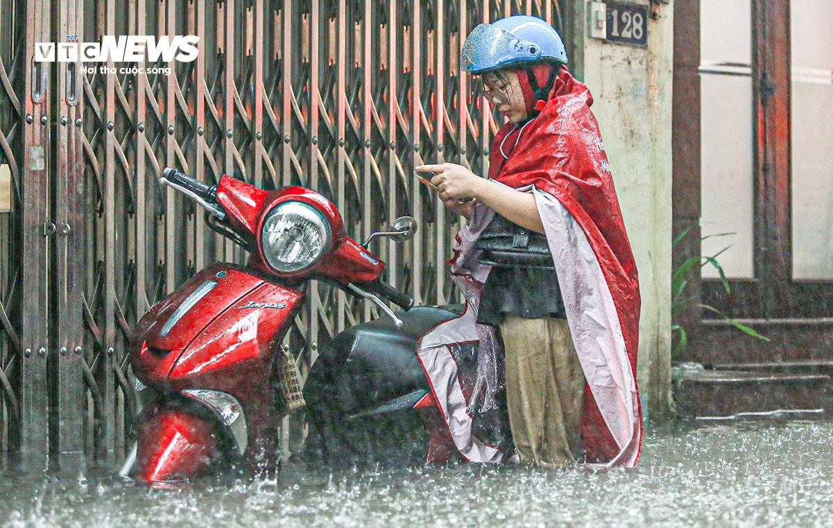 Nhận tin báo, lực lượng dân quân và nhiều người dân địa phương đội mưa ra các miệng cống vớt rác để nước mau thoát và hỗ trợ người dân.