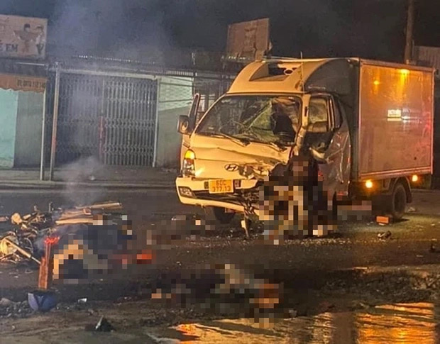 Hơn 3 giờ sáng cùng ngày, xe tải biển số Đồng Nai đi giao hàng trên tỉnh lộ 767, hướng huyện Vĩnh Cửu đi ngã 3 Trị An. Khi đến gần chợ Việt Giai, ấp Sông Mây (xã Bắc Sơn), xe tải va chạm mạnh với xe máy chở 4 người, chạy hướng ngược lại.