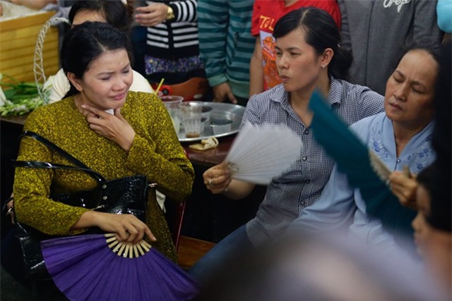 | Ca sĩ Lan Trinh ngậm ngùi trước di ảnh nam diễn viên xấu số. |
