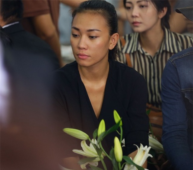 | Người mẫu Diệu Huyền đến từ sớm tiễn biệt đàn anh. Cả hai nhiều lần diễn chung sàn catwalk. |