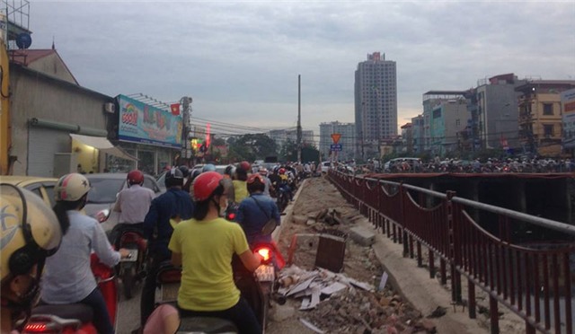 | Cuối ngày 1/9, nhiều người đứng yên cả tiếng đồng hồ khu vực cầu Định Công. Ảnh: Ka Hat |