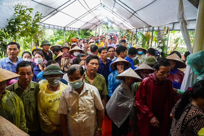 Trong lúc chờ đợi thi hài liệt sĩ, cơn mưa lớn bất ngờ kéo đến, tầm tã suốt nhiều giờ đồng hồ. Hàng trăm người dân trên địa bàn xã đã đội mưa, xếp thành hàng dài trước cổng nhà của liệt sĩ đến chờ đợi khoảnh khắc đón anh trở về với đất mẹ.