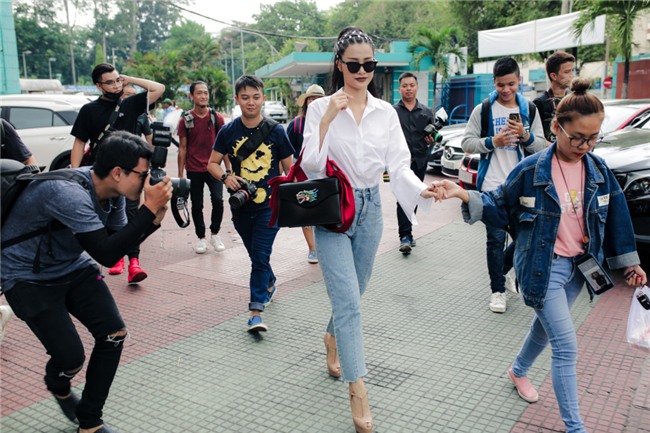 | Vừa đến nơi, nữ ca sĩ nhận nhiều sự quan tâm của cánh săn ảnh. Cô còn khéo léo khoe túi sách Gucci nằm trong bộ sưu tập Xuân 2017 là điểm nhấn của bộ trang phục khá đơn giản. |