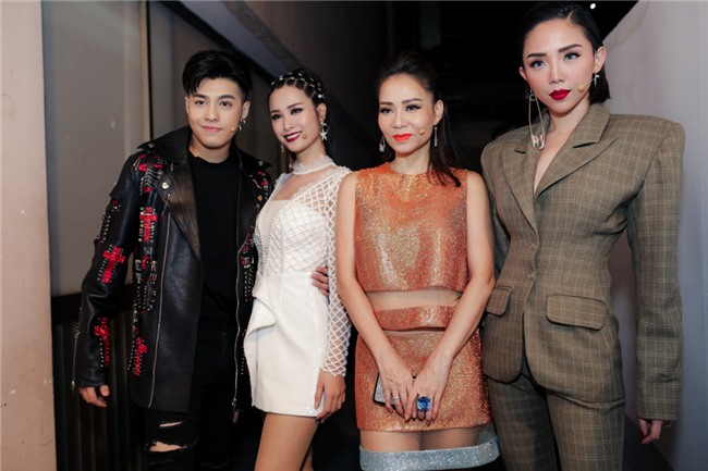 | Bộ tứ huấn luyện viên sẵn sàng trước khi lên sân khấu để theo dõi phần thi của các thí sinh. Sau vòng này, mỗi đội sẽ xác định một thí sinh bước vào đêm Chung kết xếp hạng. |