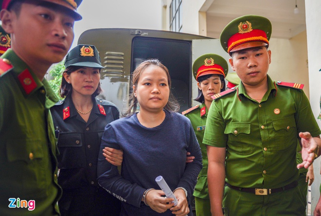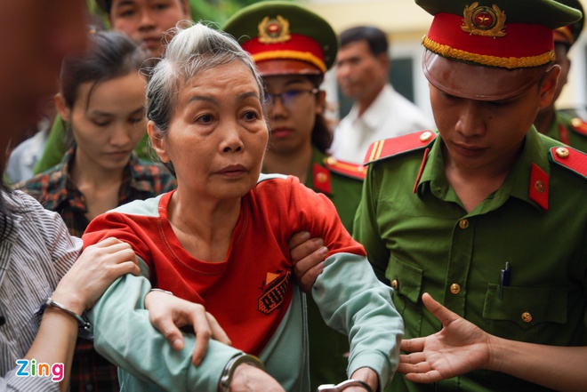 Bị cáo Trịnh Thị Hồng Hoa (mẹ ruột của bị cáo Phạm Thị Thiên Hà) đi không vững, phải nhờ đến sự hỗ trợ của đồng phạm và lực lượng dẫn giải.