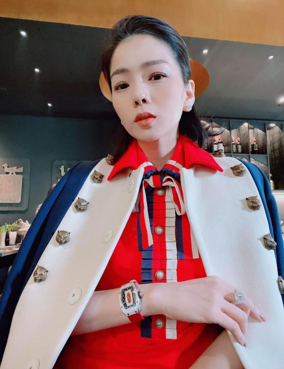"Bà mẹ một con" đã diện set đồ trẻ trung, sang trọng và đồng hồ hàng hiệu cùng nhẫn kim cương "khủng" khiến fan phải choáng ngợp.