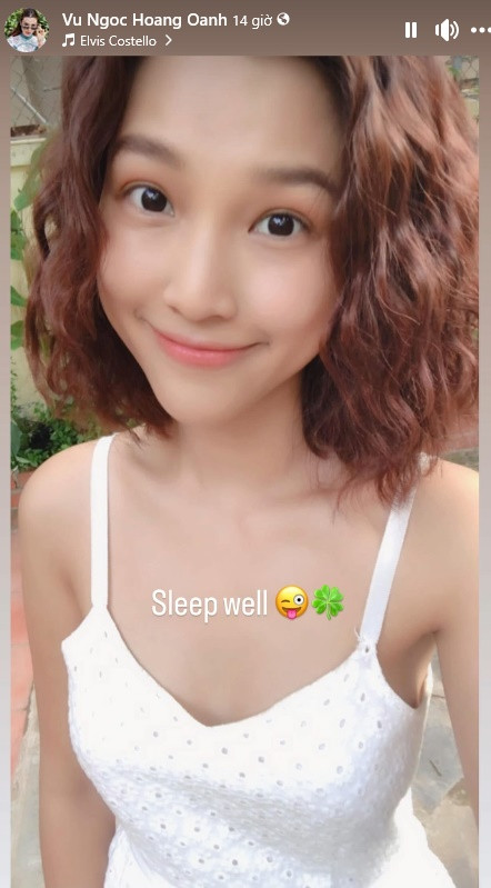 Giữa lúc chồng cũ sắp về một nhà với người mới thì động thái của MC Hoàng Oanh cũng nhận được sự quan tâm. Trên trang cá nhân, người đẹp đăng tải story khoe visual xinh tươi kèm dòng trạng thái: "Sleep well" (Tạm dịch: Ngủ ngon nhé).