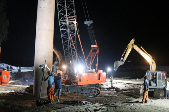 Do trở ngại địa chất ở phần đất sâu nên các lực lượng chức năng tiến hành hội ý với chuyên gia trong nước và quốc tế để có giải pháp nhằm đưa trụ bê tông lên mặt đất.