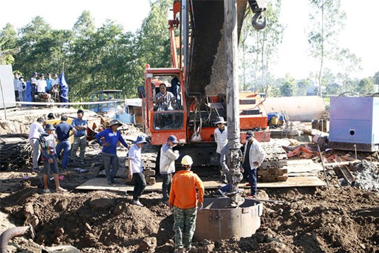 "Đã khoan được 31 m dài cọc, chỉ còn 5 m đất cứng nữa. Đêm nay, chúng tôi sẽ hoàn tất và đưa cháu ra ngoài trước rạng sáng mai", Giám đốc Sở GTVT Đồng Tháp thông tin chiều tối 2/1.