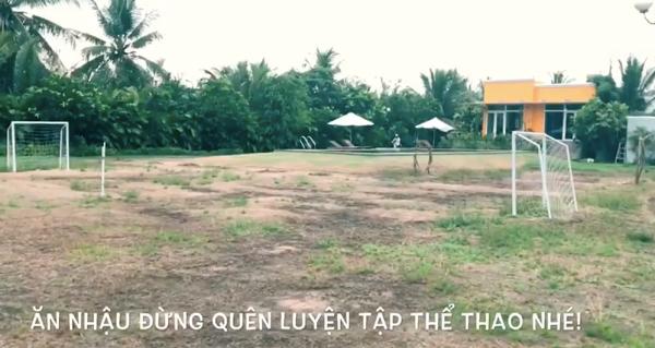 Phía trước biệt thự còn có một khoảng sân rất rộng lớn để làm sân đá bóng, luyện tập thể thao.