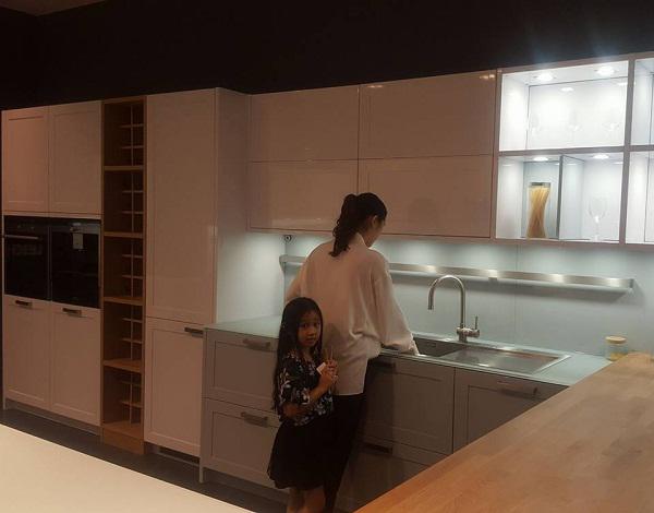 Căn hộ mà vợ chồng Minh Tiệp sở hữu khá rộng rãi và ấm cúng với nhiều đồ nội thất gỗ đắt tiền, sàn cũng được ốp gỗ sạch sẽ.