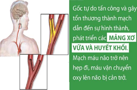 Gốc tự do làm tổn thương lòng mạch, ảnh hưởng đến chức năng dẫn máu lên não