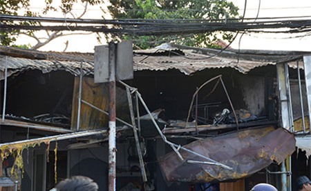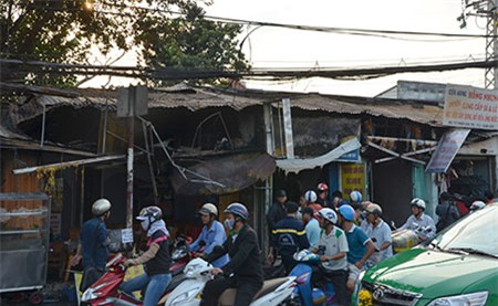Do ngọn lửa quá hung dữ nên công tác chữa cháy ban đầu bất thành. Ngọn lửa tiếp tục lan sang tiệm sửa xe và phòng trọ kế bên. Chủ tiệm sửa xe chỉ kịp dắt hai xe máy ra ngoài và không dám quay lại vì lửa quá lớn