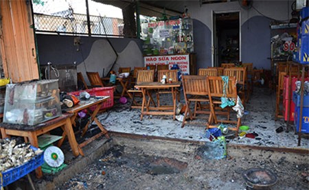 Trần nhà của quán nhậu và nhiều vật dụng bị thiêu rụi |