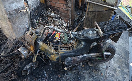 Xe máy của quán nhậu bị cháy trơ khung |