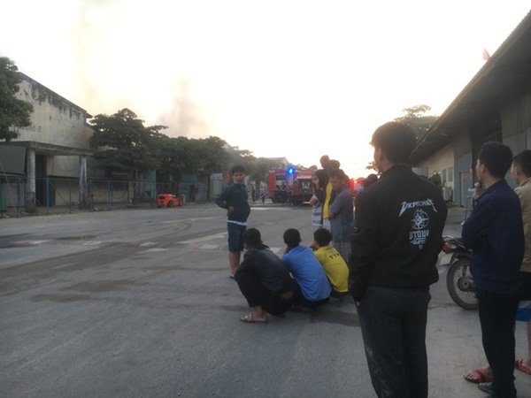 Nhiều công nhân hiếu kì đứng theo dõi vụ cháy.