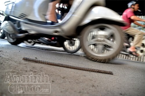Thanh sắt rơi vào người đi đường có chiều dài khoảng 40 cm