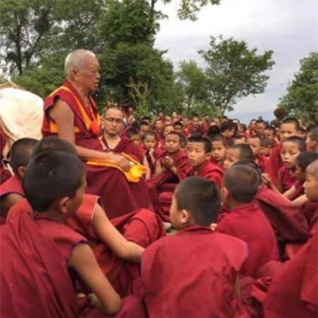 Nhà sư cầu nguyện cho các nạn nhân trận động đất và điểm phát đồ ăn sau thiên tai ở Nepal. Ảnh: Twitter
