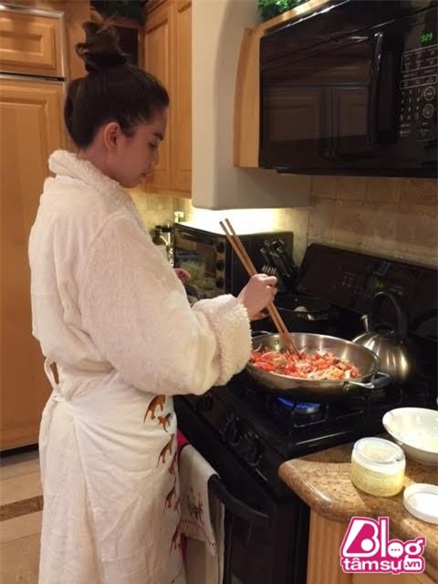 Trong đợt sang Mỹ vừa qua, Ngọc Trinh tự tay vào bếp nấu ăn cho gia đình bạn trai tỷ phú.