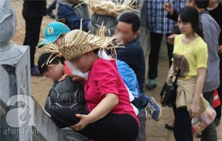 Không dừng lại ở đó, nhiều ông bố bà mẹ còn "xúi" con mình trèo lên để chụp ảnh cho đẹp.