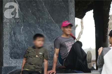 Giữa chốn tôn nghiêm, nhưng nhiều du khách đến với lễ hội chùa Bái Đính năm nay đã thản nhiên có những hành động không đẹp như: nằm ngủ, ngồi lên linh vật, trèo tường...