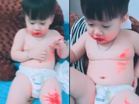 Hình ảnh em bé chỉ có lưa thưa vài sợi tóc nhưng vẫn được mẹ buộc một cách cẩn trọng khiến nhiều người không nhịn được cười.