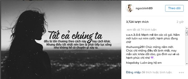 Lời nhắn nhủ tự động viên bản thân mình khiến nhiều khán giả cảm thấy luyến tiếc cho số phận chông chênh của người đẹp, rất nhiều câu từ an ủi để hàn gắn vết thương tình cảm đã được lưu lại trên instgram của Ngọc Trinh.