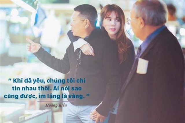 Ngọc Trinh đến với ‘tình già’ Hoàng Kiều khá nhanh, mặc dù chênh lệch tới 45 tuổi nhưng mỗi câu nói, hành động mà cặp đôi này dành cho nhau cũng hết sức ngôn tình. Khi yêu, Ngọc Trinh trở nên đằm thắm hơn, thậm chí còn có phần… sến khi nói về chuyện tình cảm của mình. Chia tay, Trinh tạm cách li với mạng xã hội và không hề đưa ra bất cứ lời nhắn nhủ nào, không như người ấy buông lơi một câu đầy ẩn ý trên facebook: “Mất một người nhưng vẫn còn có vạn người thương. Xin cảm ơn các bạn”.