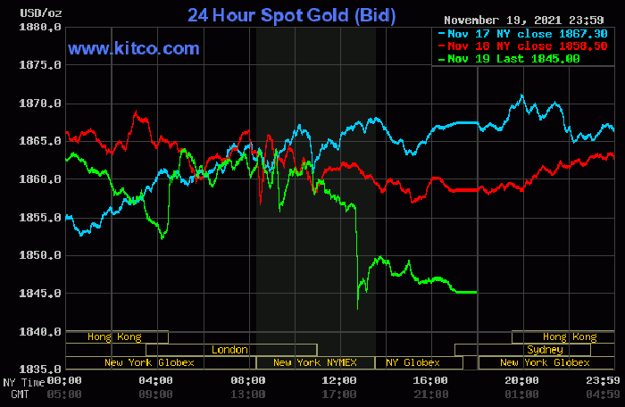 Kết thúc phiên giao dịch ngày thứ Sáu, hợp đồng vàng giao ngay giảm 0.6% xuống 1,848.05 USD/oz. Hợp đồng vàng tương lai giảm 0.5% còn 1,851.60 USD/oz.