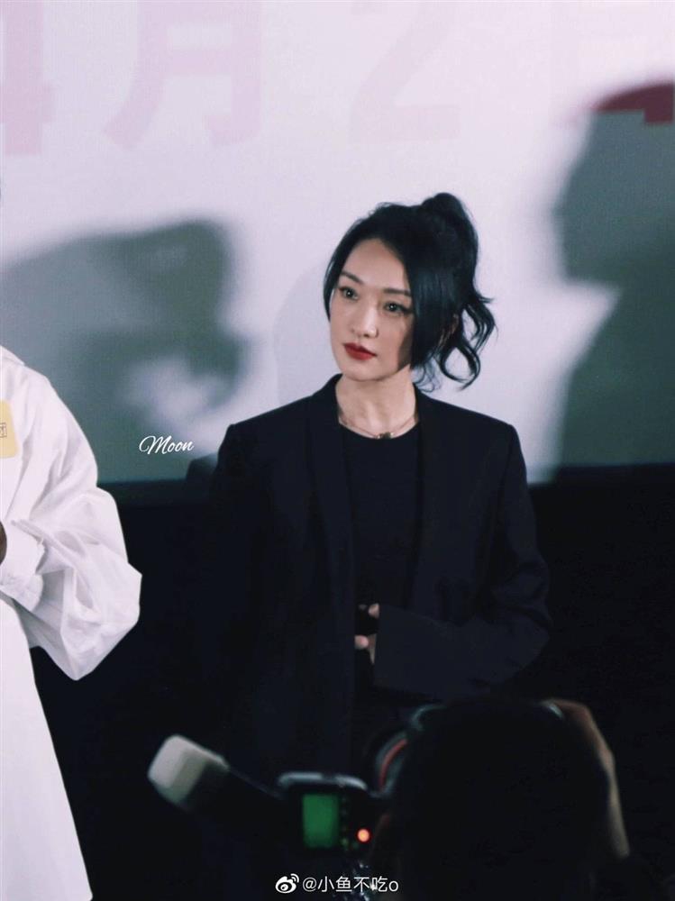 Ngoài ra, Châu Tấn chọn diện bộ suit đen tạo cảm giác thanh lịch, hiện đại. Trang phục tông đen cũng giúp tôn lên nước da trắng nổi bật. Lối trang điểm của cô thiên về hướng sắc sảo, son môi sáng màu giúp tổng thể tươi tắn, trẻ trung.