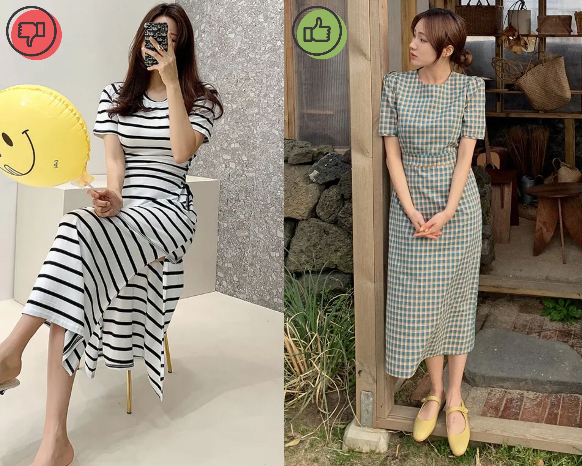 Để vẻ ngoài thêm nổi bật và trẻ trung, các nàng cũng đừng bỏ qua váy ngắn tay họa tiết hoa, chấm bi hoặc kẻ ô. Với những mẫu váy họa tiết bắt mắt, nàng công sở nên đi giày và chọn túi xách trơn màu để có được các bộ trang phục hài hòa.