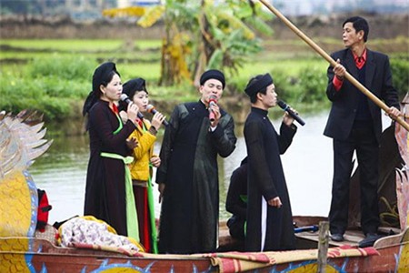 hội - nơi các liền anh liền chị đi trên thuyền, thi đối đáp bằng những