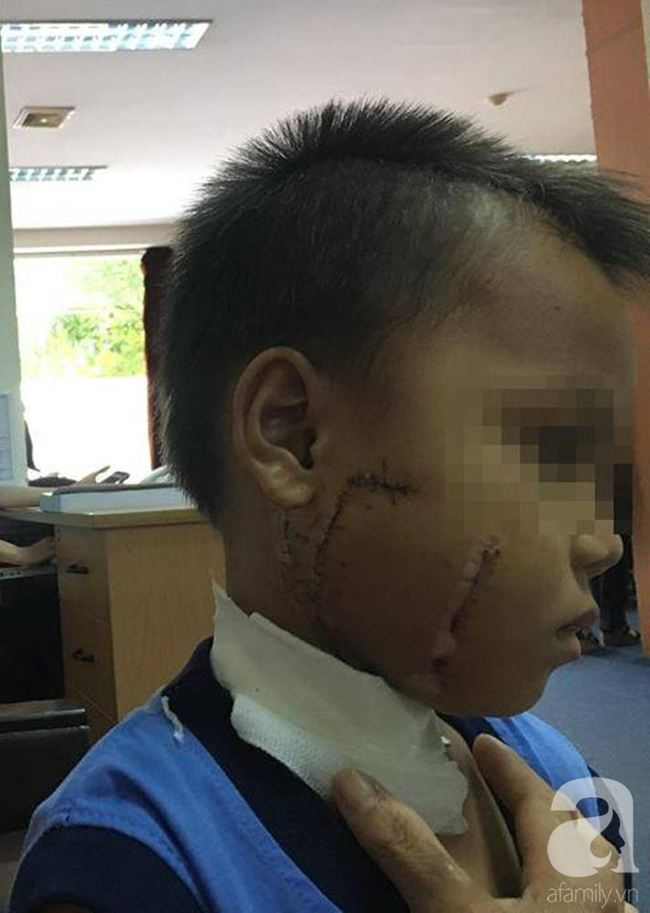 Bệnh nhi đã được mở chỉ và rửa mủ, khâu lại vết thương để tránh nhiễm trùng. Dù đã qua cơn nguy kịch nhưng vết thương cắt sâu tới tận xương hàm, đứt dây thần kinh mặt, cảm giác và đứt tuyến nước bọt nên sẽ để lại sẹo. Việc vận động cơ mặt sẽ gặp khó khăn, ảnh hưởng tâm lý bé sau này.