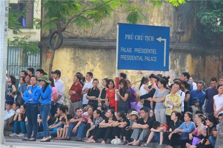 - Người dân đứng hai bên đường Kim Mã chờ đón đoàn xe đi qua - Ảnh: Nguyễn Thanh Hiền