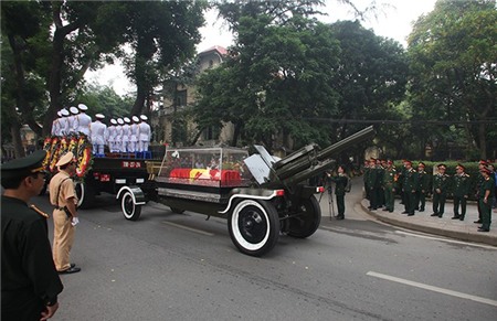 - Linh cữu của Đại tướng được đặt lên xe tang