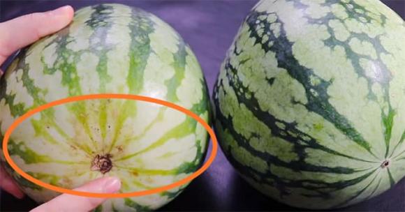 Rốn là phần trên cùng của quả dưa hấu, rốn càng to thì vỏ dưa hấu càng dày, đặc biệt sẽ không ngọt. Rốn trông càng nhỏ, có nghĩa là quả dưa hấu đã trưởng thành hoàn toàn. Lần sau khi chọn dưa hấu, bạn cũng có thể quan sát kỹ phần rốn của quả dưa hấu.