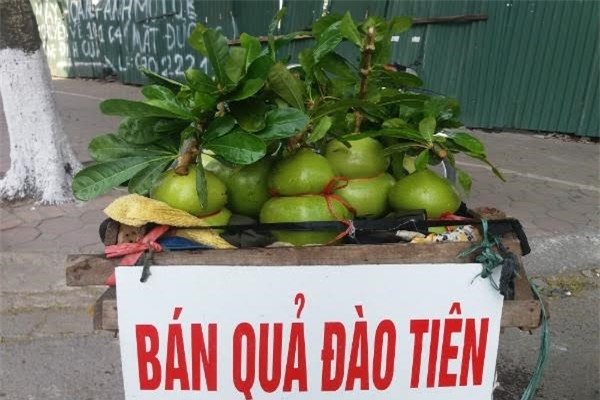 Đào tiên hồ lô (Bái Đính, Ninh Bình) giá 150 ngàn/quả xuống phố đón Tết.