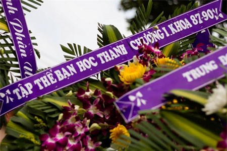 Ngoài cơ quan của các chiến sĩ, còn có bạn học đến dâng vòng hoa kính viếng.