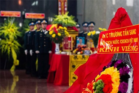 Chủ tịch nước Trương Tấn Sang gửi lẵng hoa chia buồn cùng gia đình các quân nhân. Ảnh: Hải An.