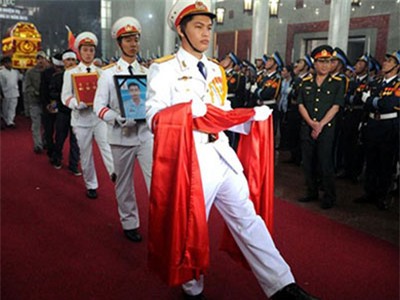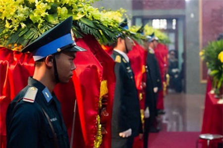 lễ truy điệu, thi hài các quân nhân hy sinh được đưa đi an táng, hoả