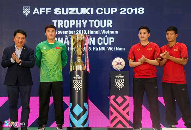 Tối 2/11, trong khuôn khổ AFF Cup Trophy - rước cúp vòng quanh Đông Nam Á, chiếc cúp đã có mặt tại Việt Nam trong 3 tiếng. Có mặt tại sự kiện và giao lưu, thủ môn Bùi Tiến Dũng cũng như Hà Đức Chinh cho biết hồi hộp khi được lại gần chiếc cúp vàng danh giá.