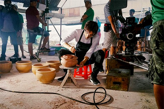 | Nguyễn Trần Trung Quân thích thú khoe những bức ảnh hậu trường MV Trong trí nhớ của anh. Trung Quân tạo dáng điệu nghệ chẳng kém một nghệ nhân gốm thứ thiệt. |